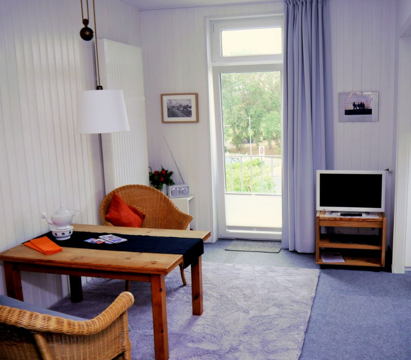 Zweiraum-Appartement für 2 Personen, 42 m²Geräumiges Zweiraum-Appartement im 1. Obergeschoss unseres Hauses in zentraler Lage von Neuharlingersiel mit kleinem Fenster zum Hafen